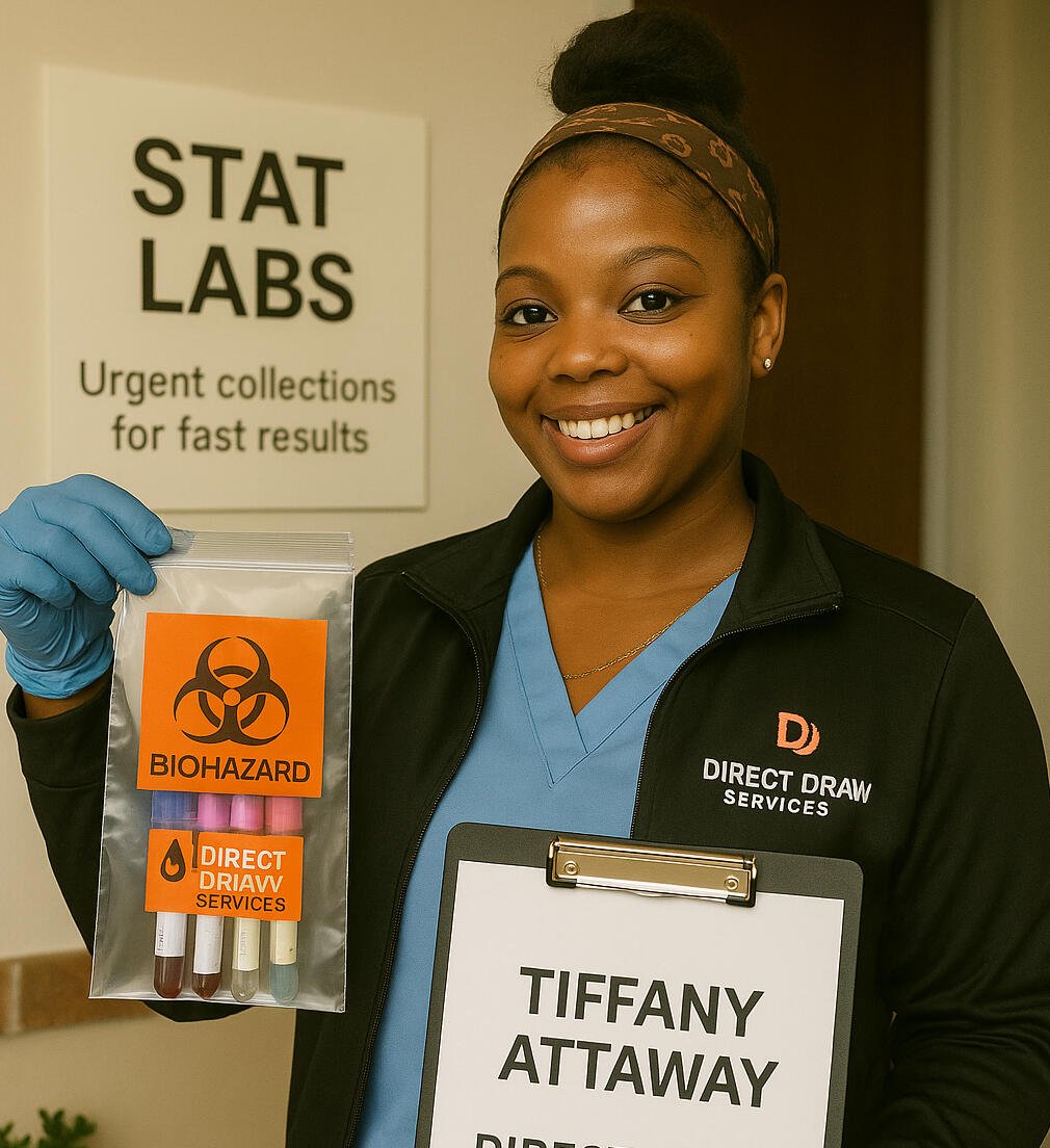 Direct Draw services LLC was founded by Tiffany Attaway, a highly skilled and certified phlebotomist who has a passion for bringing care directly to the community. With over ten years of hands-on experience, she created this service to make blood draws more accessible, less stressful, and rooted in compassion.